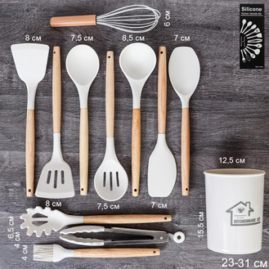 Кухонный набор 12 пр в подставке молочный KNA-100
